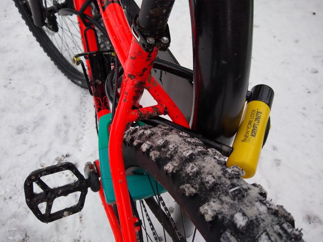 And I am far from perfect. In that last picture, my larger u-lock should be going through the frame and tire to make it even more secure. Additionally, I have switched out my quick release levers on my wheels to thru-bolts for a little more security, and I still do not feel safe. Components can still be stripped off the bike, and determined thieves could still cut through my locks. It’s insane that I’ve considered adding a motorcycle disc rotor alarm, and gps tracking to my ‘security procedure’.